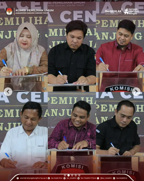 Muara Sabak, kab-tanjungjabungtimur.kpu.go.id, Dalam rangka mewujudkan tata kelola pemerintahan yang bersih, transparan, dan akuntabel, Komisi Pemilihan Umum (KPU) Kabupaten Tanjung Jabung Timur melaksanakan kegiatan Komitmen Bersama Pembangunan Zona Integritas Menuju Wilayah Bebas dari Korupsi (WBK) dan Wilayah Birokrasi Bersih dan Melayani (WBBM) pada tahun 2026 pada hari Rabu. 4 Februari 2026. Kegiatan ini merupakan wujud nyata kesungguhan seluruh jajaran KPU Kabupaten Tanjung Jabung Timur dalam mendukung reformasi birokrasi serta peningkatan kualitas pelayanan publik. Kegiatan komitmen bersama ini diikuti oleh Ketua, Anggota KPU, Sekretaris, pejabat struktural dan fungsional, serta seluruh pegawai KPU Kabupaten Tanjung Jabung Timur. Melalui penandatanganan pakta integritas dan pernyataan komitmen bersama, seluruh unsur menyatakan kesiapan untuk menegakkan nilai-nilai integritas, profesionalisme, transparansi, dan akuntabilitas, serta menolak segala bentuk praktik korupsi, kolusi, dan nepotisme dalam pelaksanaan tugas dan fungsi kelembagaan. Dengan terlaksananya kegiatan ini, diharapkan pembangunan Zona Integritas di lingkungan KPU Kabupaten Tanjung Jabung Timur dapat berjalan secara berkelanjutan dan terukur, sehingga mampu mewujudkan satuan kerja yang berpredikat WBK dan WBBM. Komitmen ini sekaligus menjadi landasan dalam memberikan pelayanan kepemiluan yang bersih, jujur, adil, serta berorientasi pada kepuasan masyarakat dan penguatan kepercayaan publik. ....