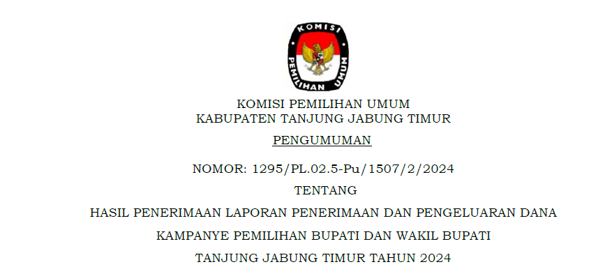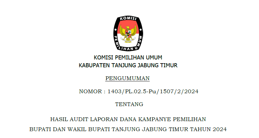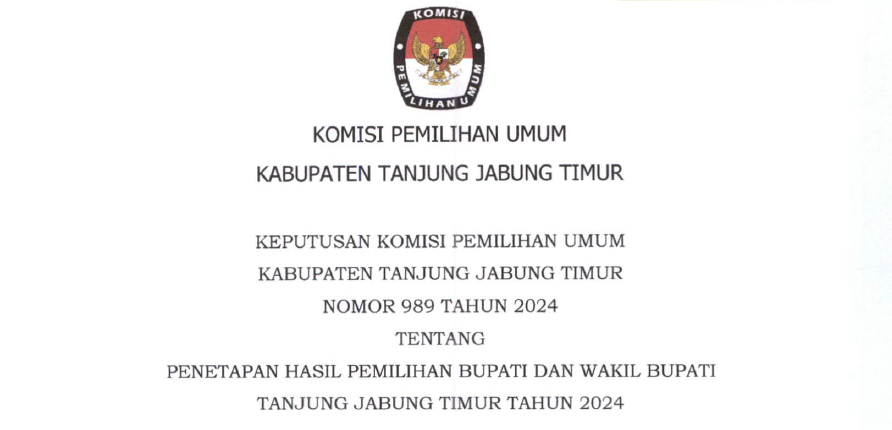 Komisi Pemilihan Umum Kabupaten Tanjung Jabung Timur melaksankan Rapat Pleno Terbuka Rekapitulasi Hasil Penghitungan Perolehan Suara tingkat Kabupaten Tanjung Jabung Timur Pemilihan Gubernur dan Wakil Gubernur Jambi serta Bupati dan Wakil Bupati Tanjung Jabung Timur Tahun 2024.